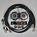 BlackMax® Black & Chrome series 2 valve anodized aluminum block body with ¼" SAE 45° fittings, Triple SealTM piston valves, easy-to-read 3 ⅛" (80mm) Class 1.0 accuracy gauges, protective gauge boots, extra access port in center with Schrader® valve, premium 5ft Pro-Set® Black & Chrome hoses with 45° anti blowback valves on end and hanging hook. MADE IN USA